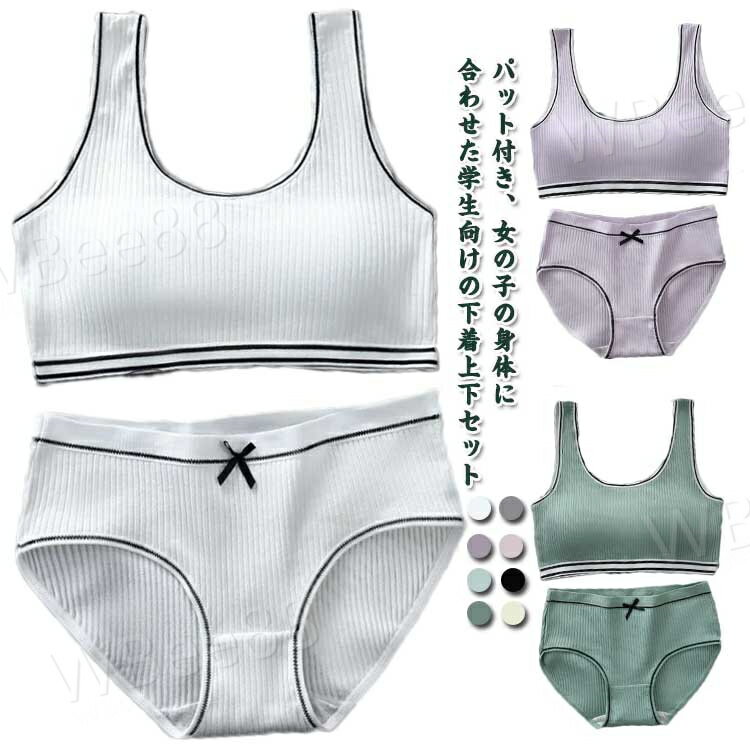 ノンワイヤーブラ ショーツセット ジュニアブラジャー 上下セット ショーツセット 無地 学生 シンプル パッド付き スポーツブラ 上下セット ナイトブラ フィットネス ヨガ 運動 トレーニング ストレスフリー ベストタイプ 育乳ブラ 中学生 小学生 高校生