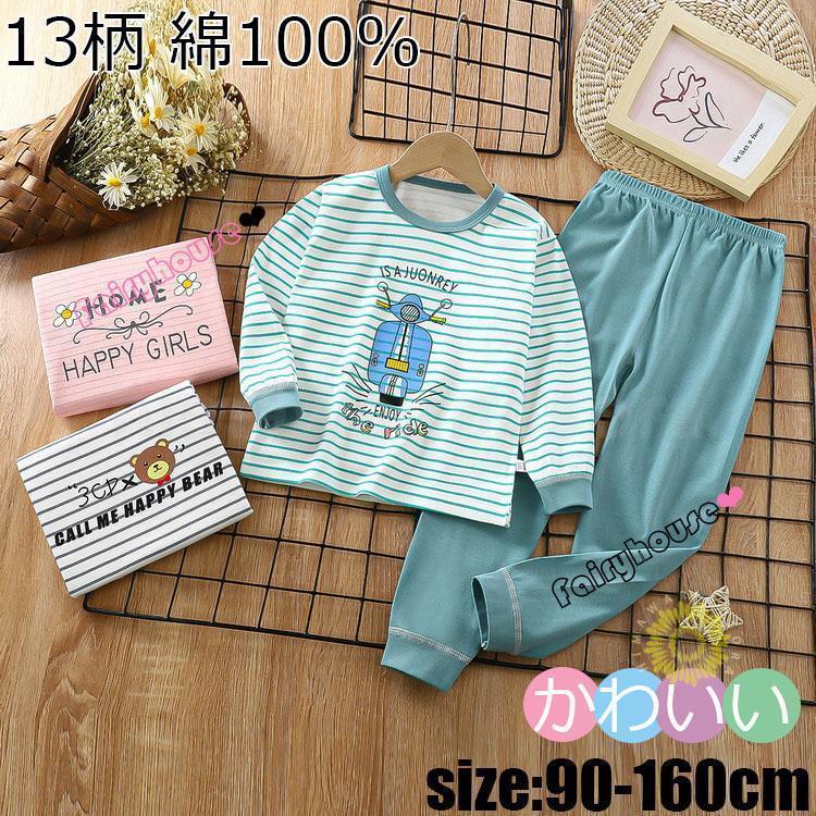 子供パジャマ キッズ ジュニア 上下セット 13柄 綿パジャマ 長袖 長袖パジャマ 子供服 男の子 女の子 ボーイズ ガールズ 90-160cm ルームウェア 部屋着 春 秋 冬
