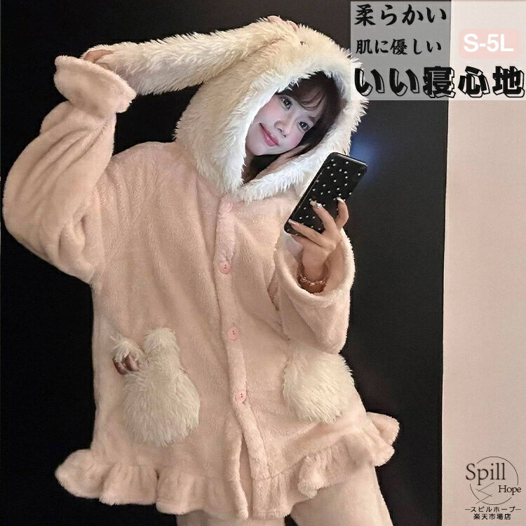パジャマ ルームウェア レディース 女の子 兎 うさぎ ピンク グレー 裏起毛 秋 冬 前聞き 厚手 女性 中学生 高校生 長袖 おしゃれ 可愛い 柔らかい 産後 ママ 母の日 ゆったり 暖か ガウン もこもこ ふわふわ 出産 修学旅行 部屋着 寝間着 寝巻き プレゼント ギフト