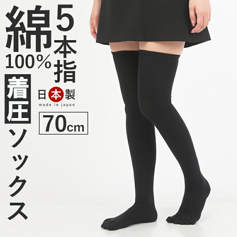 着圧ソックス ニーハイソックス 5本指 消臭靴下 70cm 日本製 オーバーニー ニーハイ ハイソックス 靴下 レディース 綿100% オーガニックコットン 消臭 消臭靴下 むくみ解消 冷え性 弾性ストッキング 弾性ソックス 脚痩せ ルームソックス むくみ取り 夜間頻尿 敬老の日