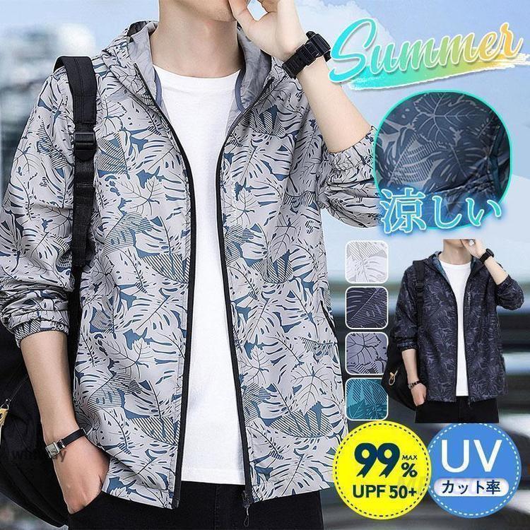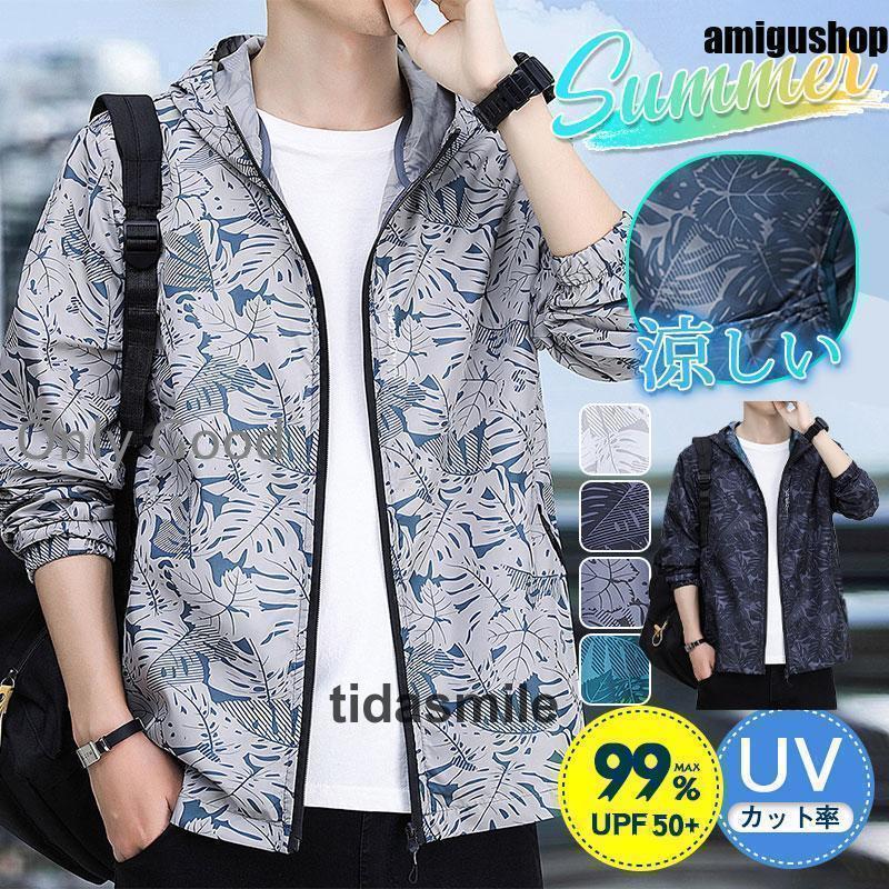 サマーカーディガン メンズ ライトアウター 夏 春 長袖 フード付 撥水加工 柄 薄手 涼しい 紫外線対策 冷房対策 トップス 部屋着 サーフ ギフト