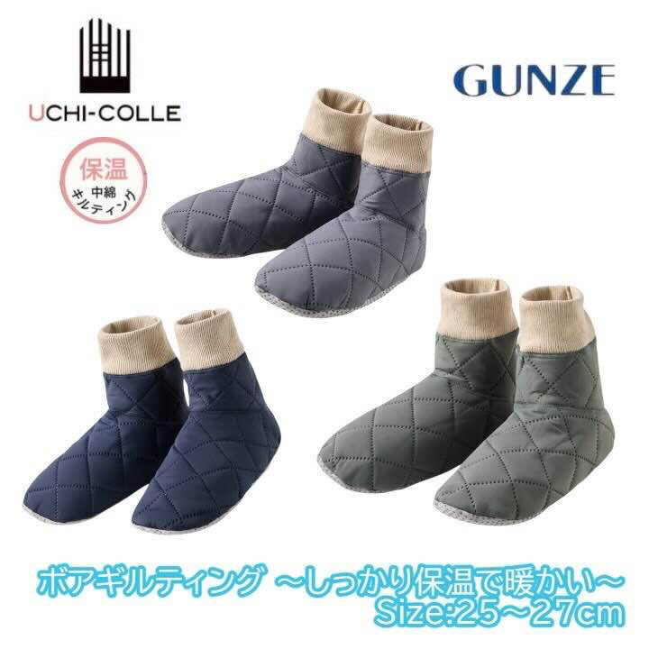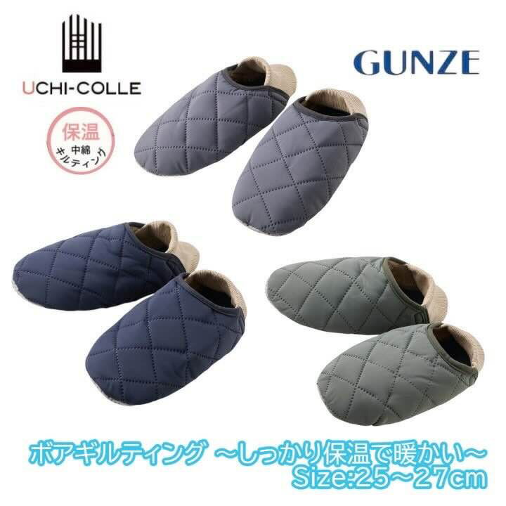 グンゼ ルームシューズ スリッパ ルームブーツ 室内履き メンズ 紳士 ストレッチ キルト 中綿入り 内側ボア すべり止め付き 撥水 保温 洗濯可 秋冬 防寒 あたたかい ボア もこもこ ふわふわ 冷え対策 在宅 テレワーク ウチコレ AUY011 25-27 ギフト プレゼント