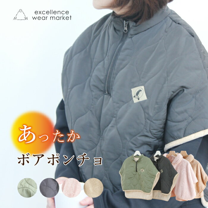 ルームウェア ボア 裏ボア 肩当て ポンチョ 裏起毛 おしゃれ かわいい キルティング 保温 フリース キルト 暖かい 防寒 部屋着 冬 レディース ふわふわ もこもこ 寒さ対策 防寒着 就寝 家事 カーキ チャコール キャンプ アウトドア プレゼント 女性 送料無料
