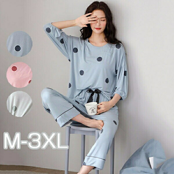 ルームウエア ドット 柄 上下セット 部屋着 かわいい 夏 着心地よい 水玉柄 パジャマ オシャレ 緑色 ピンク 青 可愛い レディース オーバーサイズ ゆったり 大きいサイズ M/L/XL/2XL/3XL k5104zezed4