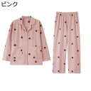 パジャマ レディース 春夏 ルームウェア 可愛い 部屋着 上下セット 前開き 長袖 ナイトウェア 水玉 シンプル おしゃれ 快適 コットン 新生活