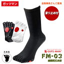 ガッツマン 滑り止め付五本指ソックス FM-03 日本製 足裏整体に基づいた滑り止め 踏ん張れる 疲労軽減 ビジネス ずれにくい 自衛隊 防災の日 格闘用5本指靴下 レギュラー丈 白 黒 しっかりと踏ん張れるのでヨガやゴルフにも 父の日プレゼント