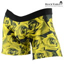 BLACK VARIA ブラックバリア blackvaria ボクサーパンツ ロングボクサー 薔薇 バラ 花柄 メンズ 下着 mens ファッション おしゃれ セクシー ジム スポーツ(ゴールド金イエロー黄ブラック黒) uw084b