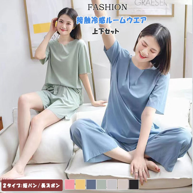 【最大50%OFFクーポン】冷感パジャマ 上下セット レディース ルームウェア 夏用 アイスシルク 涼感 接触冷感 半袖 長ズボン 短パン 部屋着 かわいい おしゃれ 薄手 軽量 ゆったり 快適 素肌感覚 着心地抜群 プレゼント ギフト 母の日 夏服 パジャマセット ナイトウェア
