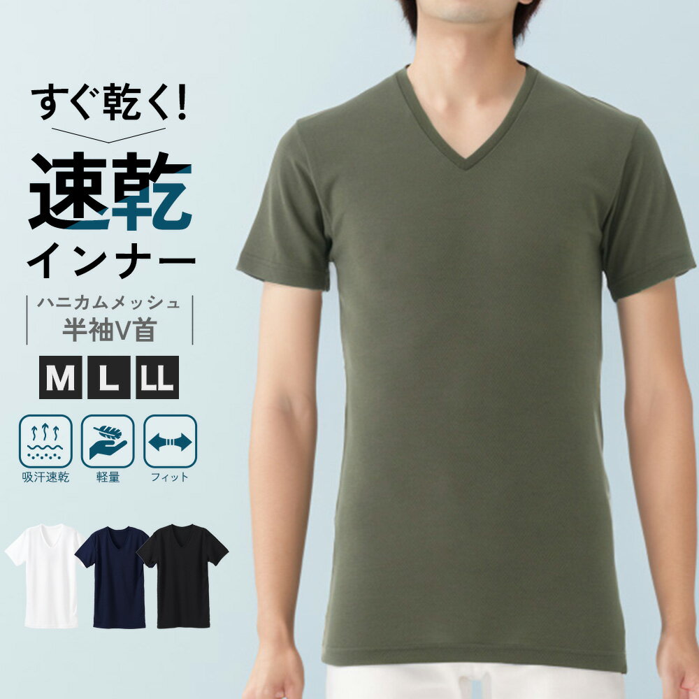 SALE≪P10倍≫12/11〆 爆速乾 メッシュ 半袖 Vネックシャツ メンズ 春夏 ドライ 吸汗速乾 軽量 インナー V首 トップス 肌着 30代 40代 50代 60代 紳士 男性 L0901C-E
