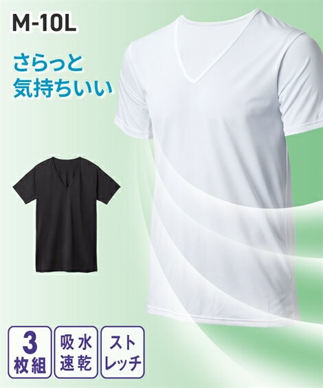 |  下着 インナー Vネック 半袖 吸汗速乾 3枚セット メンズ M-10L ストレッチ 深Vネック半袖 3枚組 まとめ買い お買い得 大きいサイズ メンズ ニッセン