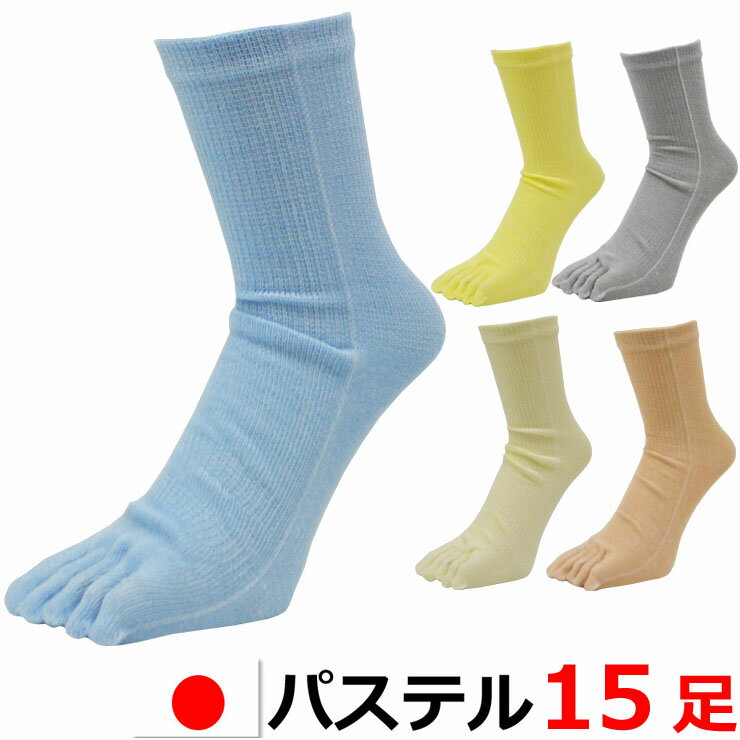 5本指ソックス メンズ 日本製 パステルカラー 15足組 送料無料 クルーソックス クルー丈 紳士靴下 メンズソックス 5本指靴下 健康靴下 15足 まとめ買い 綿100% 足ムレ防止 消臭靴下 かかとなし サポート付き (00080)