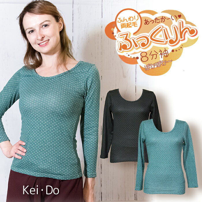 【メール便送料無料】あったか 8分袖 インナー 裏起毛レディース ドット