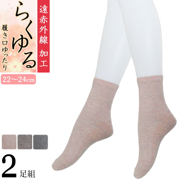 締め付けない靴下 レディース 遠赤外線 らくゆる 722134 リブ編み ショートクルー丈 2足組 送料無料 あったか靴下 履き口ゆったり クチゴム しめつけない 綿混 レディース ソックス 婦人靴下 秋冬 寒さ対策(05477)