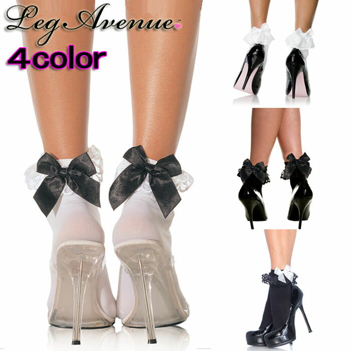 【メール便3点まで270円】Leg Avenue(レッグアベニュー)サテンリボン×レースラッフルトリム付き アンクルストッキングソックス LA3029 ショートソックス ホワイト 白 黒 ブラック 靴下 アンクレットソックス ゴスロリ ロリータ メイド コスチューム コスプレ A477-A480