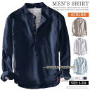 シャツ 綿麻 麻シャツ プルオーバーシャツ メンズ バンドカラー シャツ 長袖 リネンシャツ ボタンシャツ カジュアルシャツ