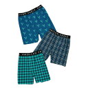 アメリカンイーグル AMERICAN EAGLE メンズ Men's トランクス 下着 3枚セット AEO Printed Stretch Boxer Short 3-Pack ブルー系 グリーン系