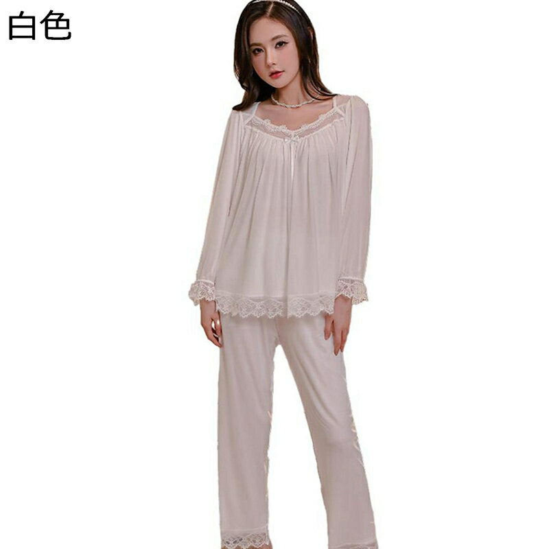 パジャマ レディース 2点セット 長袖 ロングパンツ 長袖シャツ フリル モダール レース 姫系 宮廷風 ナイトウェア 部屋着 ルームウェア 吸汗 通気 肌に優しい 柔らかい 可愛い 春 夏 秋