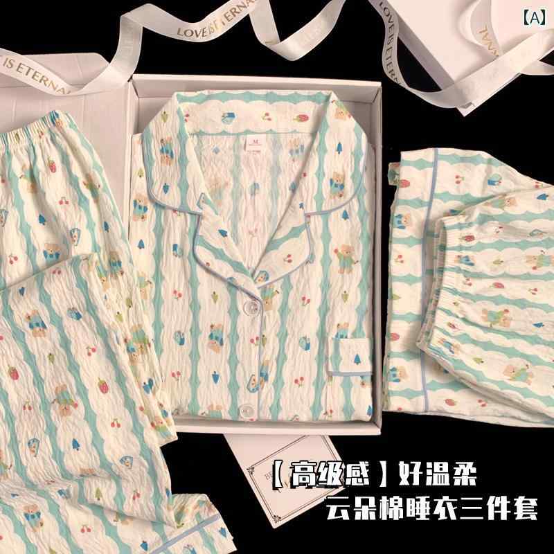 青い クマ 長袖 パジャマ 女性用 春秋 夏 雲 綿 半袖 ズボン スリーピー スーツ ルームウェア カジュアル