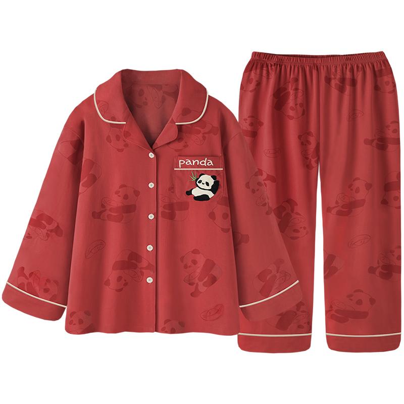 ルームウェア レディース メンズ 部屋着 パジャマ 春秋 カジュアル かわいい パンダ コットン 大きいサイズ 前開き