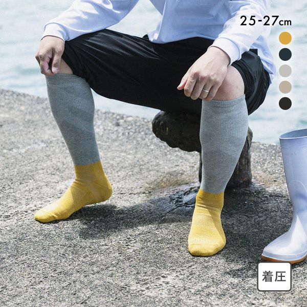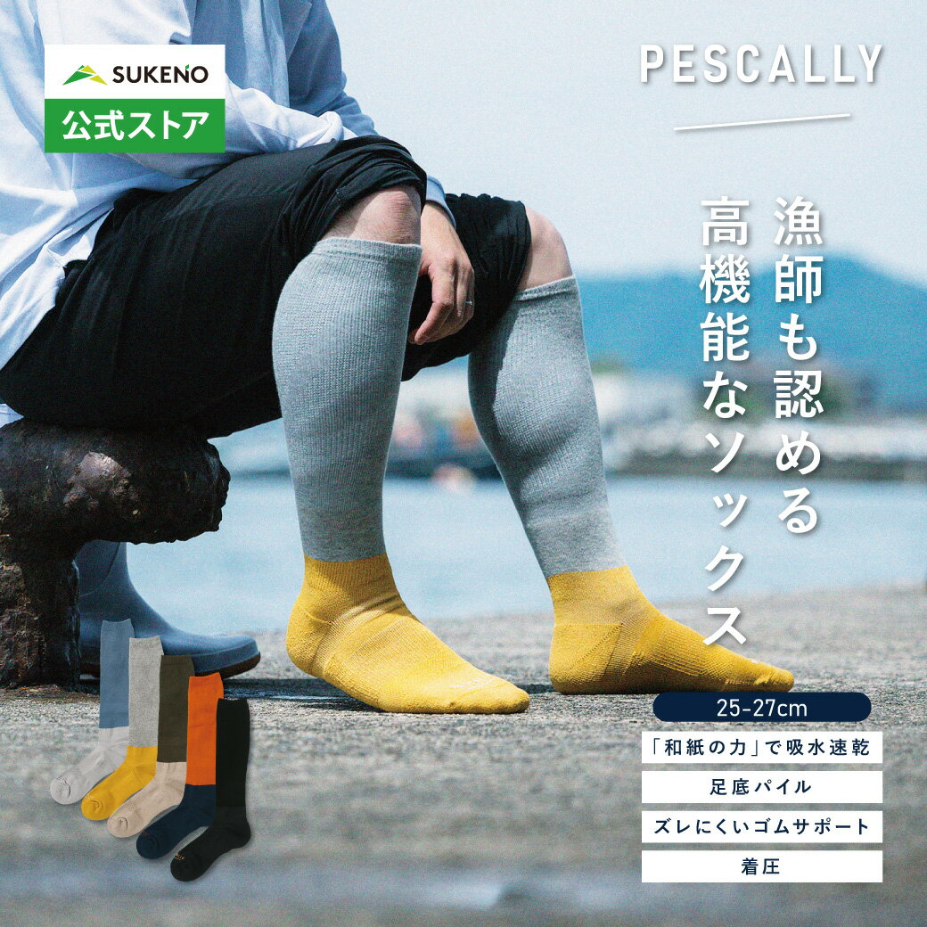 【累計35万足 着圧 ソックス 】 PESCALLY 和紙パイル らく圧 25-27cm メンズ 蒸れない 吸水速乾 消臭 通気性 長靴 ずれ ない アウトドア 釣り スポーツ サポートソックス プレゼント おしゃれ 日本製 ブランド 靴下 ハイソックス ロング ペスカリー