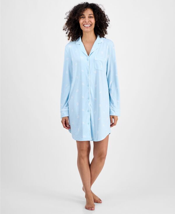 チャータークラブ レディース アンダーウェア ナイトウェア プリント シャツ ジャージー Charter Club Women's Jersey Printed Long Sleeve Sleepshirt Aquablue/turquoise ターコイズ