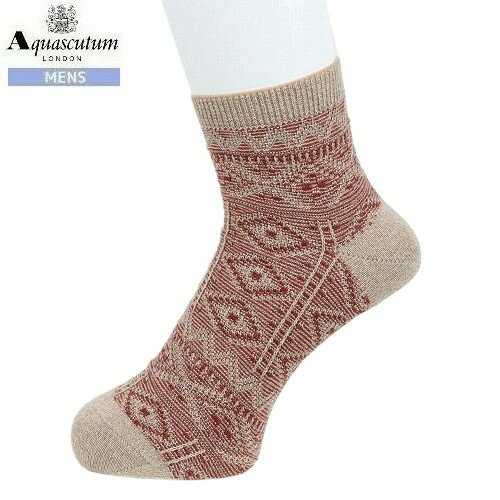 アクアスキュータム 靴下 Aquascutum メンズ ブランド ギフト プレゼント 日本製 SOFT TENSION カジュアル ソックス ベージュ×赤 23/7/1 060723【ネコポスで送料無料】