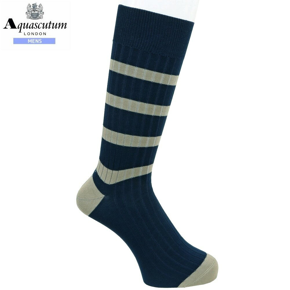 アクアスキュータム 靴下 Aquascutum メンズ ブランド ギフト プレゼント 日本製 ボーダー リブ カジュアル ソックス 紺 24/9/1 060924【ネコポスで送料無料】