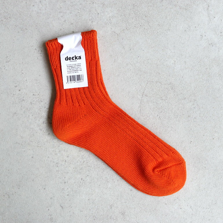 【ブラックフライデー★P最大47倍】decka quality socks[デカクォリティソックス]Low Gauge Rib Socks Short Length(1st Collection) オレンジ[靴下 ソックス リブソックス ローゲージ ショート丈 無地 厚手 レディース メンズ 日本製]☆