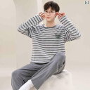 パジャマ メンズ 男性用 上下セット 綿100% 長袖 ルームウェア 寝間着 部屋着 丸首 プルオーバー 通気 快適 青年 秋冬 春秋