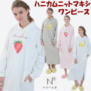 ナルエー ハニカムニットマキシワンピース ピンク オフホワイト グレー M〜Lかぶり ルームウェア ネグリジェ 寝巻 バナナ いちご レディース あったか ロング丈 narue 秋冬 おしゃれ 暖か 長袖 ギフト包装無料 あす楽