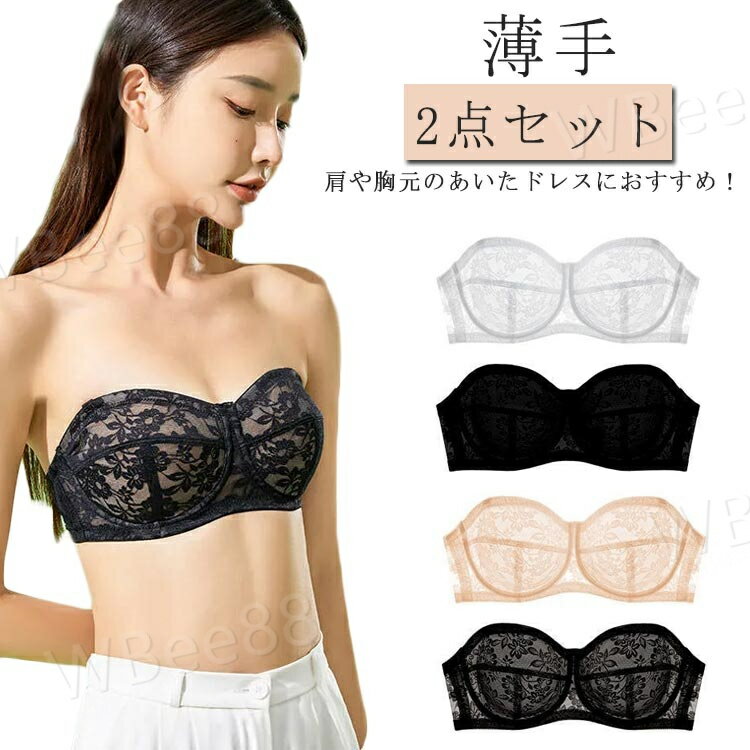 肩や胸元のあいたドレスにおすすめ!ずれないストラップレスブラに新作が登場です。かわいいレースデザイン、胸を小さく見えるストラップレスブラ。薄手レース素材を使用、綺麗なシルエットにカップ部分は柔らか素材で通気性があり汗ばむ季節も快適。滑り止め素材を使用、ストラップレスは肩や背中開いた服やドレスの時だけでなく肩紐の食い込みや肩こりのお悩みも解決。オフショルダー、キャミソール、どんな装いにも合わせやすく、幅広いシーンで大活躍するストラップレスブラジャー。ストラップ付きなので、普通のブラジャーにも変身可能!オンにもオフにも使える万能ブラです。 サイズ75B 75C 75D 80B 80C 80D 85B 85C 85D 90B 90C 90Dサイズについての説明75B:75B 75C:75C 75D:75D 80B:80B 80C:80C 80D:80D 85B:85B 85C:85C 85D:85D 90B:90B 90C:90C 90D:90D ※商品のサイズは手作業で測定させて頂いておりますので、若干の誤差があります。素材ポリエステル色2点セット1 2点セット2 2点セット3 2点セット4 2点セット5 2点セット6 2点セット7 2点セット8 2点セット9 2点セット10備考 ●サイズ詳細等の測り方はスタッフ間で統一、徹底はしておりますが、実寸は商品によって若干の誤差(1cm〜3cm )がある場合がございますので、予めご了承ください。 ●商品の色は、撮影時の光や、お客様のモニターの色具合などにより、実際の商品と異なる場合がございます。あらかじめ、ご了承ください。●製品によっては、生地の特性上、洗濯時に縮む場合がございますので洗濯時はご注意下さいませ。▼色味の強い製品によっては他の衣類などに色移りする場合もございますので、速やかに(脱水、乾燥等)するようにお願いいたします。 ▼生地によっては摩擦や汗、雨などで濡れた時は、他の製品に移染する恐れがございますので、着用の際はご注意下さい。▼生地の特性上、やや匂いが強く感じられるものもございます。数日のご使用や陰干しなどで気になる匂いはほとんど感じられなくなります。
