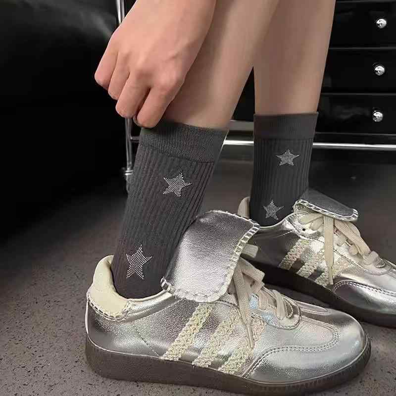 靴下 レディース ソックス 中筒 スター 星柄 グレー 秋冬 ポリエステル混紡 168N かわいい スタイル・素材: 涤棉.ポリエステル50-70% ・対象: 女性.若者(18-40歳)・長さ: ミドル丈・スタイル: スイート・カラー: オフホワイト.グレー.ブラック.ブルー.ピンク・製法: シングルニードル・針数: 168N・カテゴリ: カジュアルソックス
