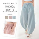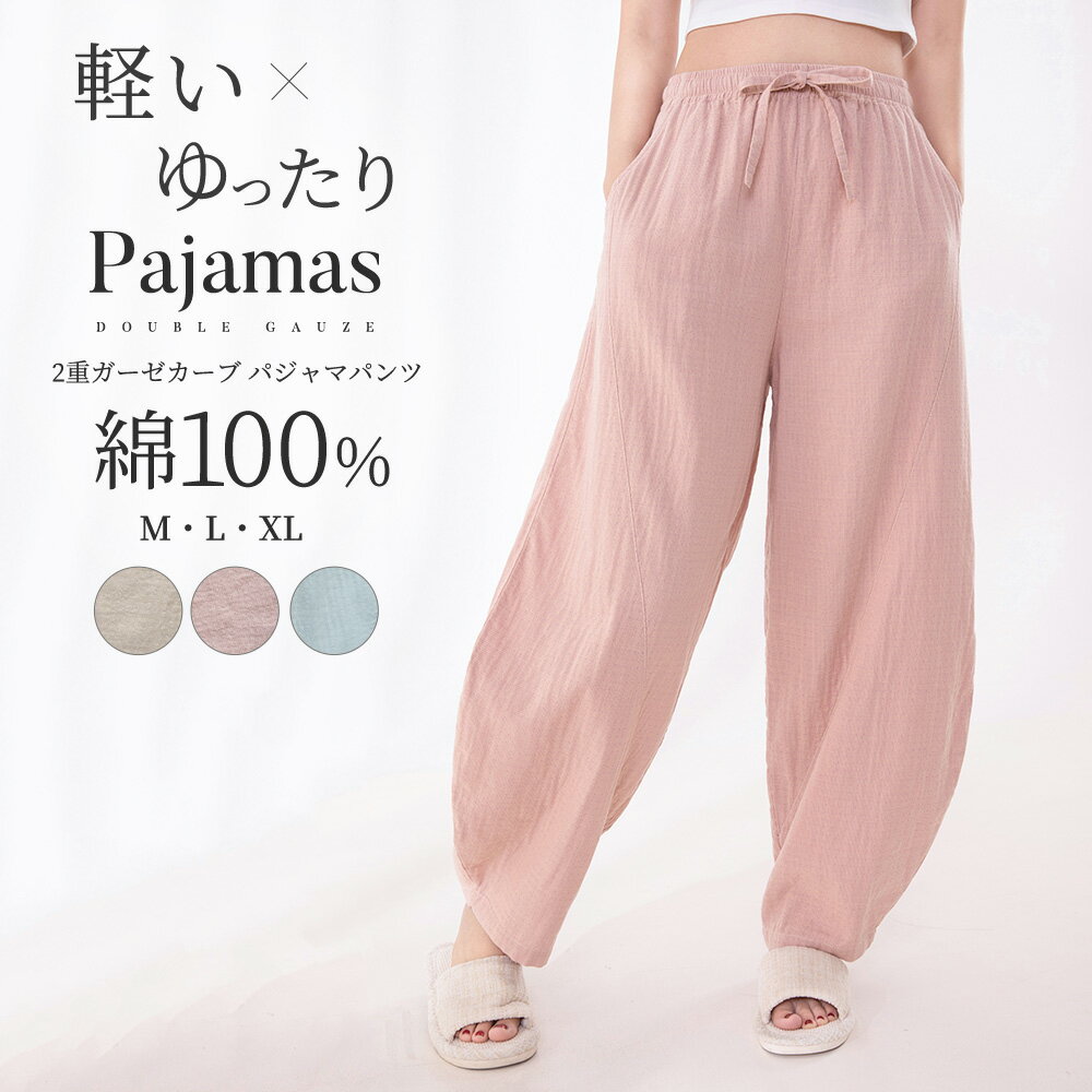 パジャマパンツ レディース 夏 ルームウェア ダブルガーゼ 2重ガーゼ 女 長パンツ ルームパンツ 湯上りパンツ 綿100% 柔らか ボトムス 寝巻き ポッケト付き 部屋着 色紗工芸 カーブ カーブシルエット 体型カバー 痩せ見せ ワイドパンツ ゆったり 大きいサイズ M L LL