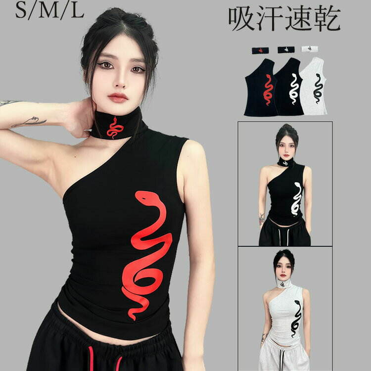 ダンス衣装 レディース キッズ ノースリーブ トップス ダンスキン ショート丈 ヒップホップ ジャズダンス 袖なし 蛇柄 肩出し オフショルダー 黒 白 赤 ガールズ 韓国 k-pop アイドル風 jazz 可愛い 練習着 レッスン着 演出服 発表会 ステージ衣装 イベント おしゃれ hiphop