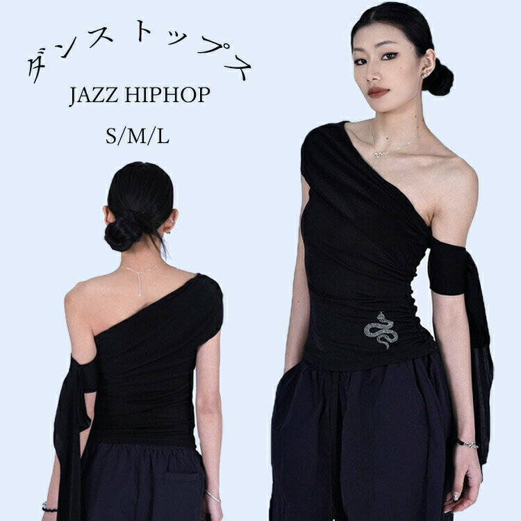 ダンス衣装 レディース キッズ トップス ダンスキン 半袖 ヒップホップ ジャズダンス 蛇柄 肩出し オフショルダー 黒 ガールズ 韓国 k-pop アイドル風 jazz 可愛い 練習着 レッスン着 演出服 発表会 ステージ衣装 イベント おしゃれ hiphop ストリート ダンスウェア kpop