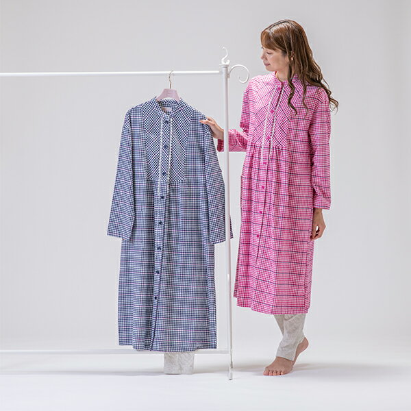 【dreamy diary】先染 ネル レギンス付きホームドレス レディース ふわっと軽く、さわやかな触感の生地で仕立てたネグリジェに 肌触りのよいニット素材のスパッツの組み合わせです。 このスパッツは、生地内にポリウレタンを使うことで、 伸縮性がプラスされ、素材の柔らかい特長をさらに際立たせました。 風が心地よい時期には特に快適にお過ごしいただけます。 上下セットですので、組み合わせを考えたり 単品で着用する楽しみもございます。 SIZE GUIDE> 詳しいサイズ表記はこちら Mサイズ Lサイズ ヌード寸(cm) バスト 79-87、ヒップ 87-95 バスト 86-94、ヒップ 92-100 平置き実寸(cm) トップ:前開き全開 長袖 ■トップ 着丈:約110肩幅:約50バスト:約108袖丈:約50 ■トップ 着丈:約113肩幅:約52バスト:約112袖丈:約51 この商品の詳細 素材 トップス 綿100% ボトムス 綿99% ポリウレタン1% 原産国 中国 生地の伸縮 トップス 伸縮性はほぼありません。 ボトムス 伸縮性はあります。 生地の透け感 トップス 場合により薄い色の部分は透けることがあります。 ボトムス 透け感はありません。 その他 洗濯ネット使用。色移りを避けるため、なるべく色の薄い物と同時に洗うのは避け、 洗濯後はすみやかに干してください。 乾燥機、アイロンのご使用はお避けください。 塩素漂白剤による漂白はできません。 ギフトラッピング(無料・有料)の御注文も承ります。 > ラッピングの注文はこちら