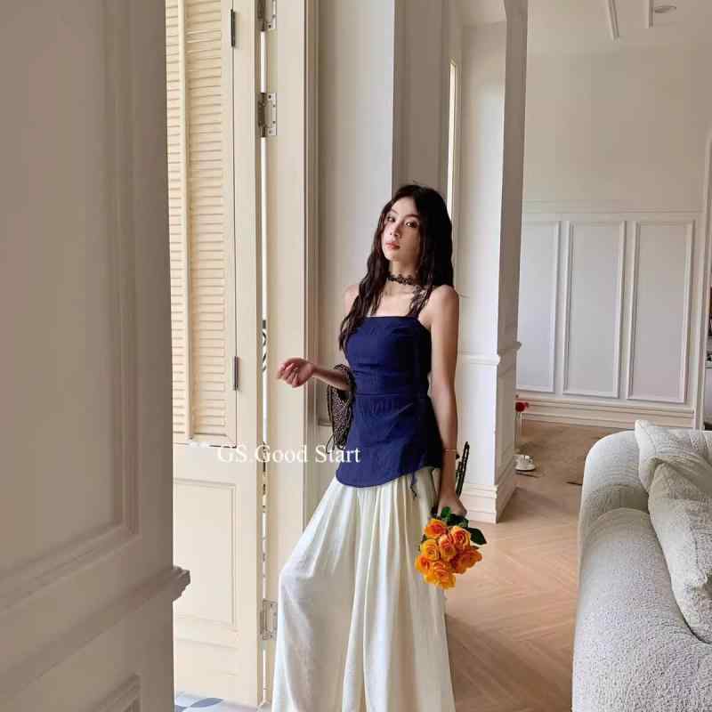 ・スタイル: 挂脖款・シルエット: 收腰型・着丈: 普通丈(50cm<着丈≤65cm)・柄: 無地・素材: 綿麻・カラー: 紺、黄、薄紫(ネックストラップ付き)・サイズ: S(75-90), M(92-102), L(104-114), XL(115-125)・対象年齢: 成人・スタイル: 日韓カジュアル、韓流・性別: 女性・ストラップ: ダブル・伸縮性: ややあり・テイスト: セクシー