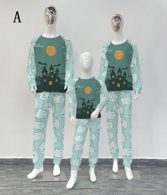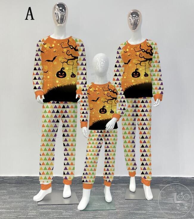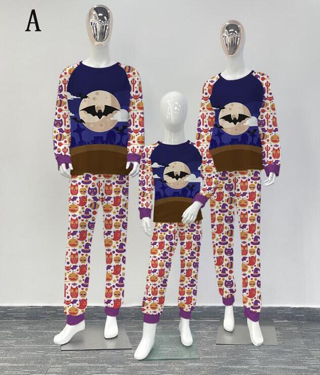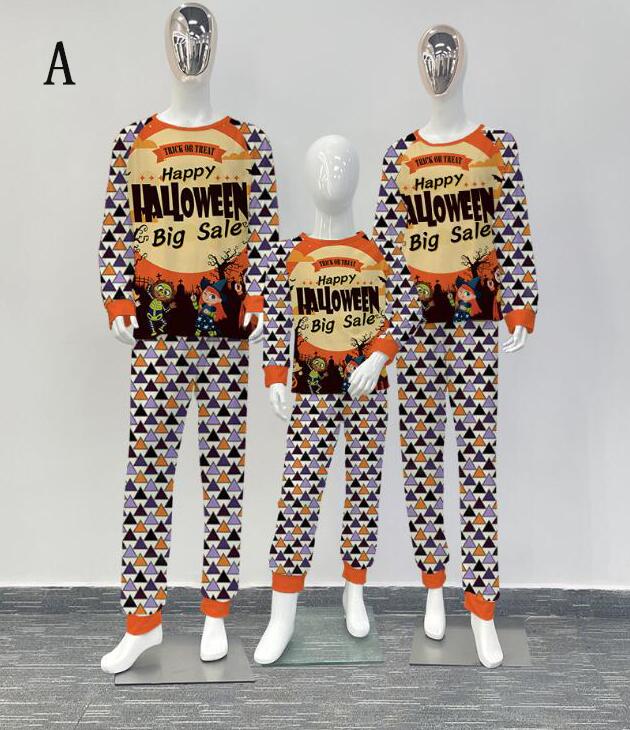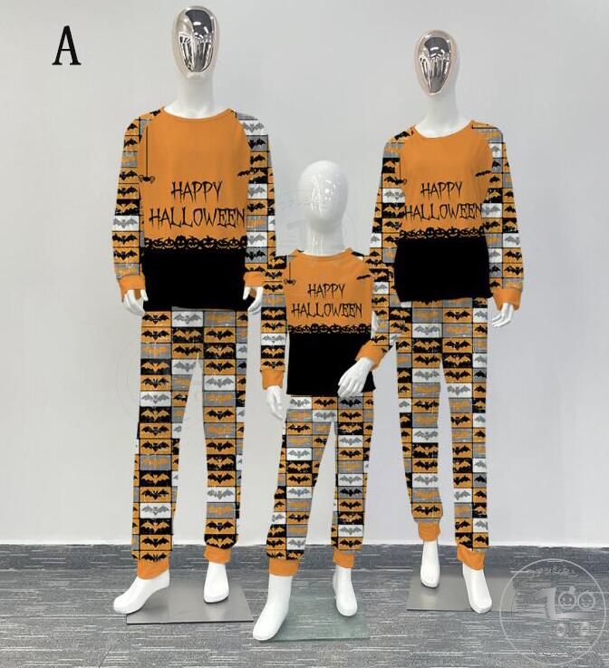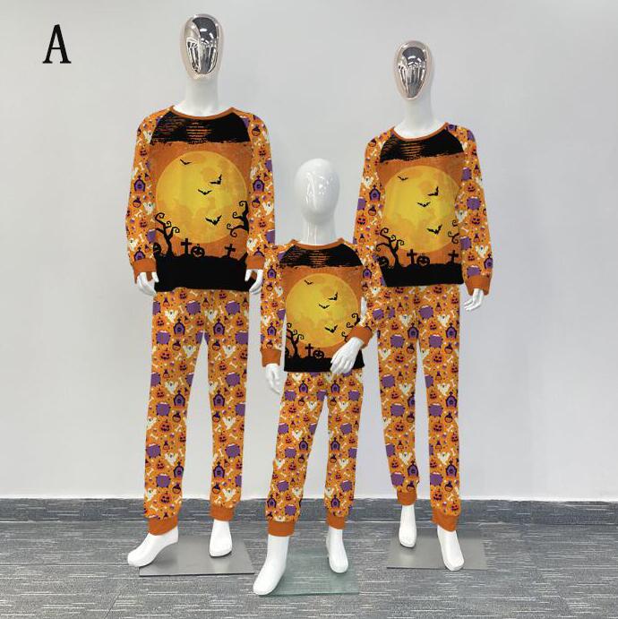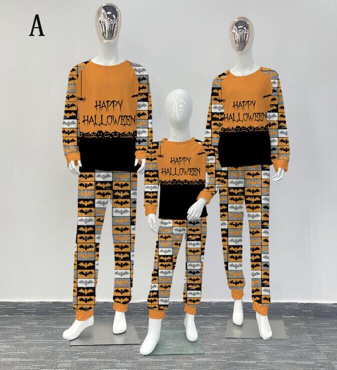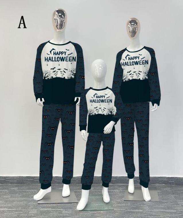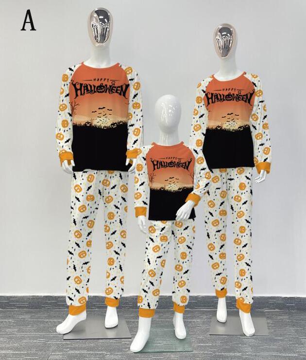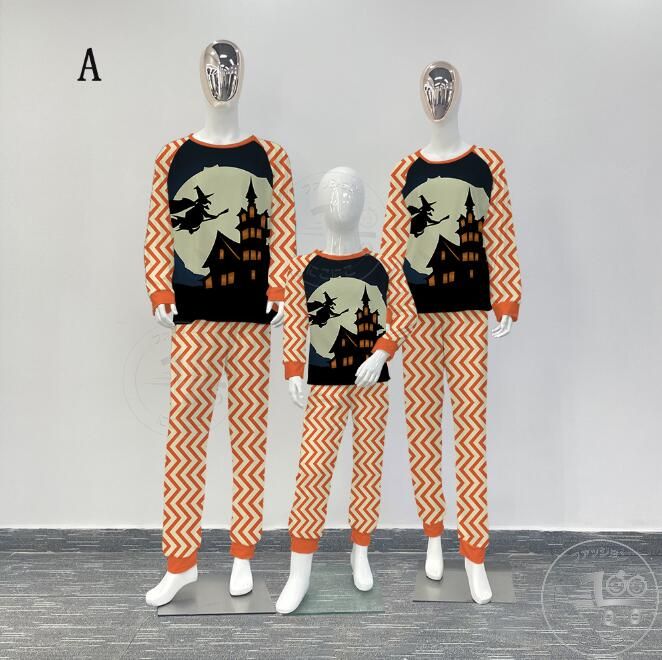 親子ペアハロウィンパジャマ ハロウィン元素プリントパジャマ Happy Halloweenルームウェア ws08 子供 男女兼用 ベビー ハロウィンコスプレ ロング丈パンツ 子供 ママ パパ 家族部屋着 長袖tシャツ パジャマ上下セット