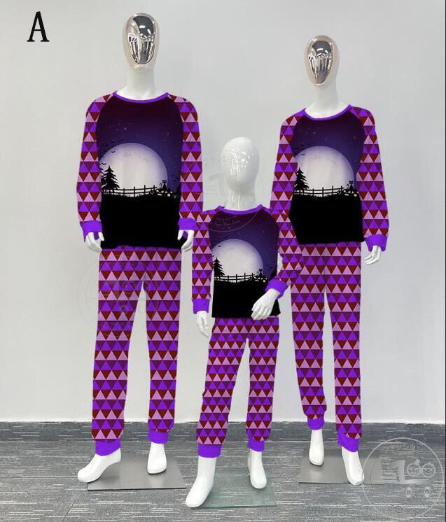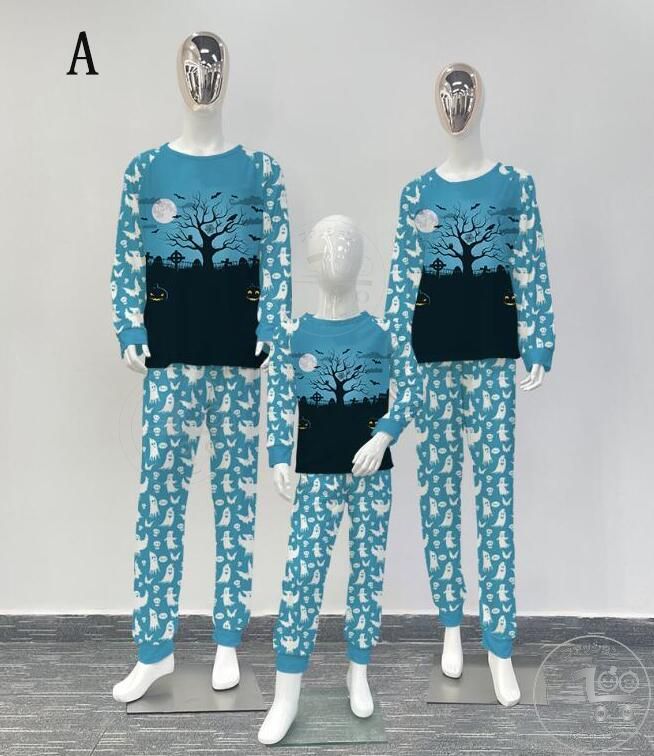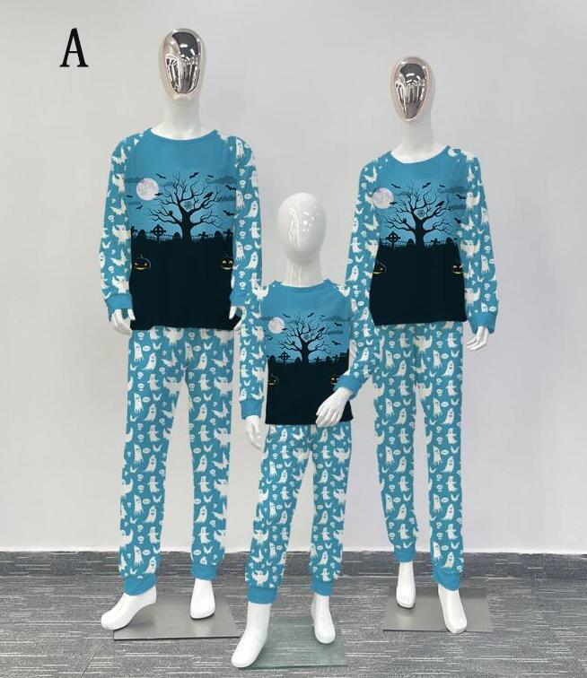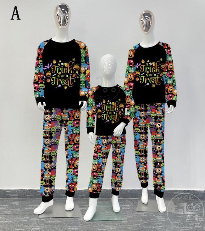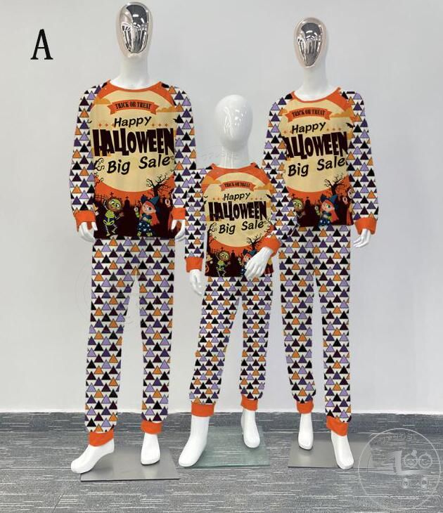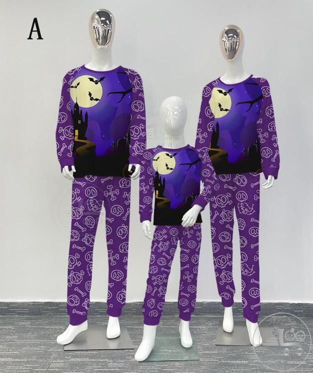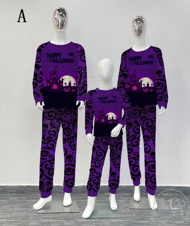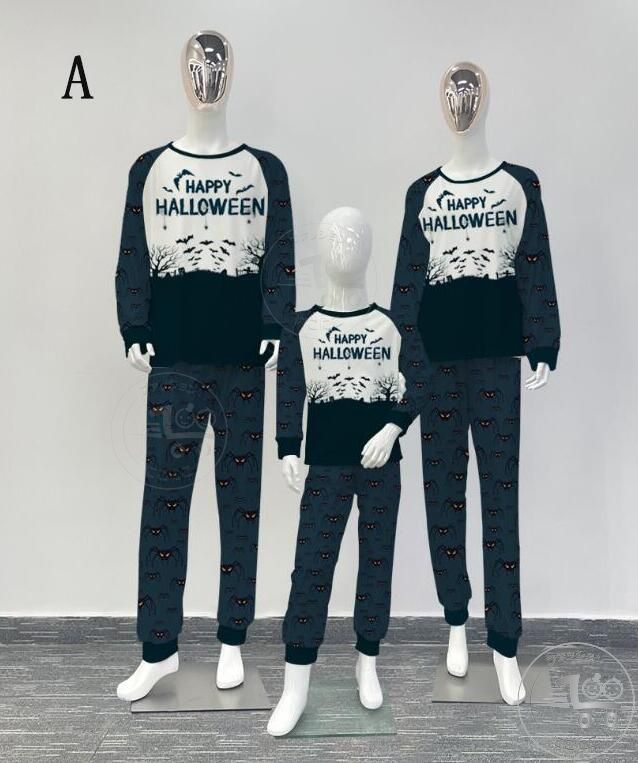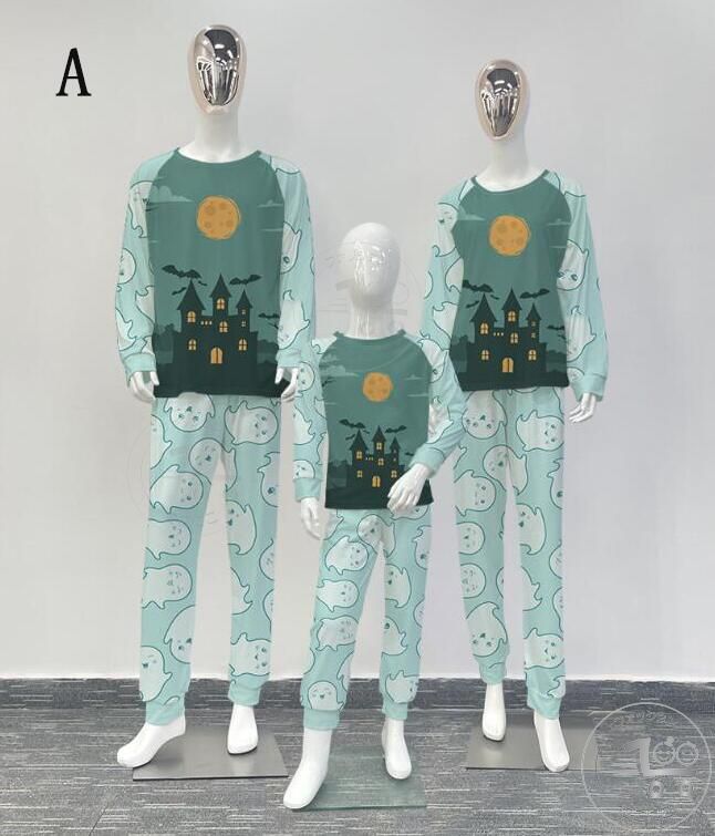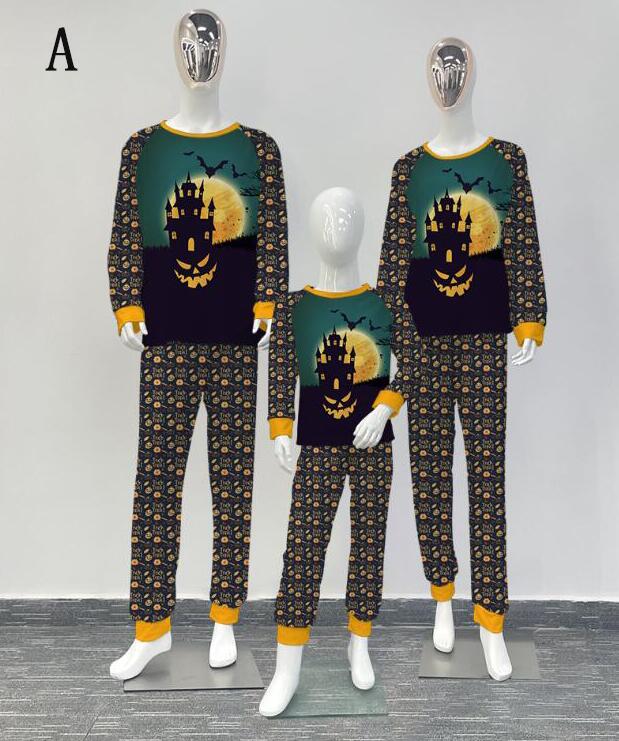 親子ペアハロウィンパジャマ ハロウィン元素プリントパジャマ Happy Halloweenルームウェア ws08 子供 男女兼用 ベビー ハロウィンコスプレ ロング丈パンツ 子供 ママ パパ 家族部屋着 長袖tシャツ パジャマ上下セット