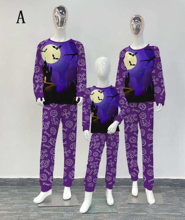 ハロウィン親子ペアパジャマ ハロウィン元素プリント カラス 髑髏Happy Halloweenルームウェア 子供 男女兼用 ベビー ハロウィンコスプレ ロング丈パンツ 子供 ママ パパ 家族部屋着 長袖tシャツ パジャマ上下セット
