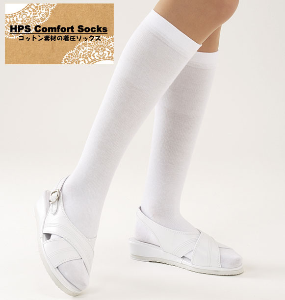 <メール便送料無料>コットン着圧ソックス 2足組 ホワイト(HCS-01) HPSコンフォートソックス【コットン着圧靴下 着圧くつ下 着圧くつした ハイソックス 学生 立ち仕事 座り仕事 オールシーズン ひざ下 むくみ】