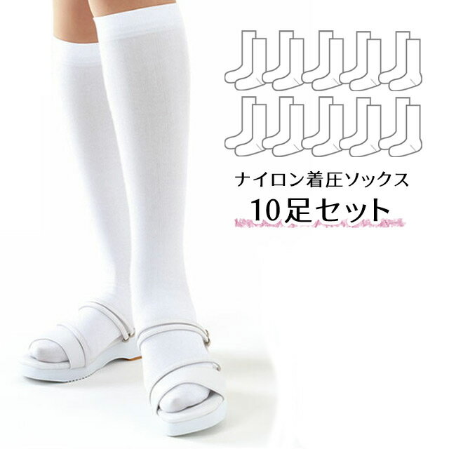 <まとめ買いセール5個セット>ナイロン着圧ソックス 10ペア(2足組×5セット) ホワイト(HCS-02) HPSコンフォートソックス