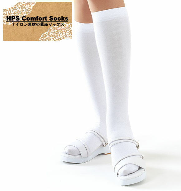 <メール便送料無料>ナイロン着圧ソックス 2足組 ホワイト(HCS-02) HPSコンフォートソックス【ナイロン着圧靴下 着圧くつ下 着圧くつした ハイソックス 学生 立ち仕事 座り仕事 オールシーズン ひざ下 むくみ】