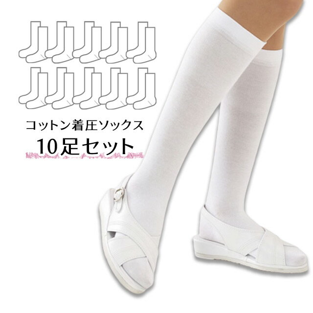 <まとめ買いセール5個セット>コットン着圧ソックス 10ペア(2足組×5セット) ホワイト(HCS-01) HPSコンフォートソックス