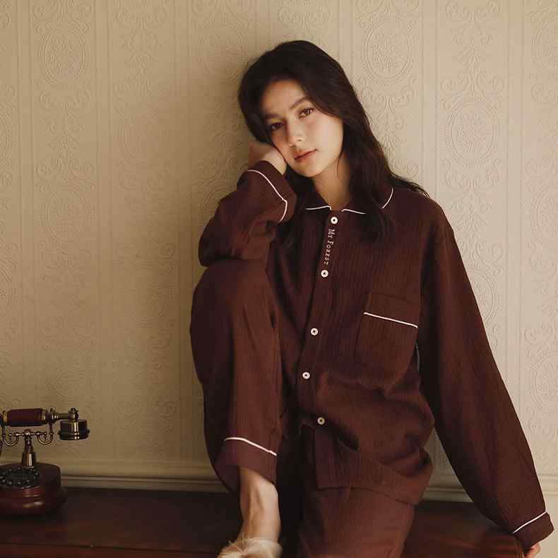 パジャマ レディース メンズ 全綿ガーゼ 長袖 上下セット 通気性 吸汗性 薄手 襟付き ルームウェア 春秋 部屋着 リラックスウェア M L XL ヘラ 藏藍