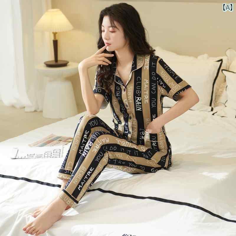 パジャマ 上下 薄手 パジャマ 女性 夏 綿 半袖 ズボンは 外で 着用 できます 大きいサイズ 春秋 薄手 スタイル 高級 ストライプ ホーム 服 スーツ