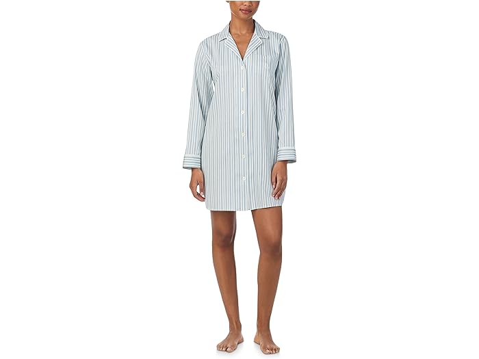(取寄) ローレン ラルフローレン レディース ロング スリーブ ロール タブ ヒズ シャツ スリープシャツ Lauren Ralph Lauren women Long Sleeve Roll Tab His Shirt Sleepshirt Blue Stripe