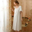 ルームウェア レディース 女性用 半袖 ロング丈 接触冷感 吸湿速乾 コットン ゆったり 快適 通気性 フレンチ 宮廷風プリンセス レース スウィート ルームワンピース パジャマ 外出OK 春夏