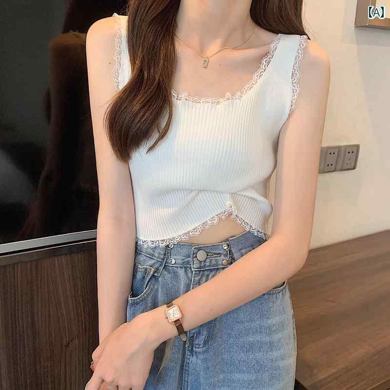 ホワイト 冷感 ニット ベスト レディース 2025 夏 インナーウェア アウターウェア レース サスペンダー ブラック 美しい バックボトム トップ