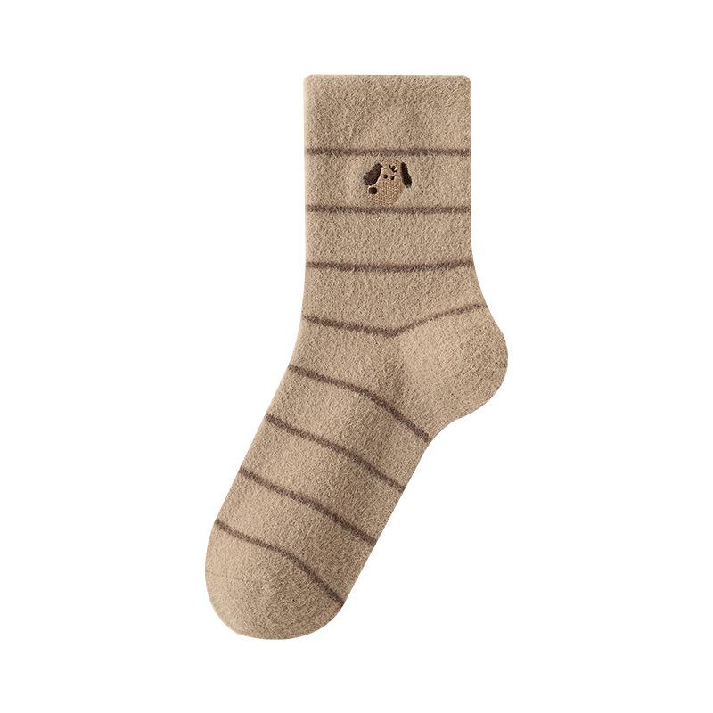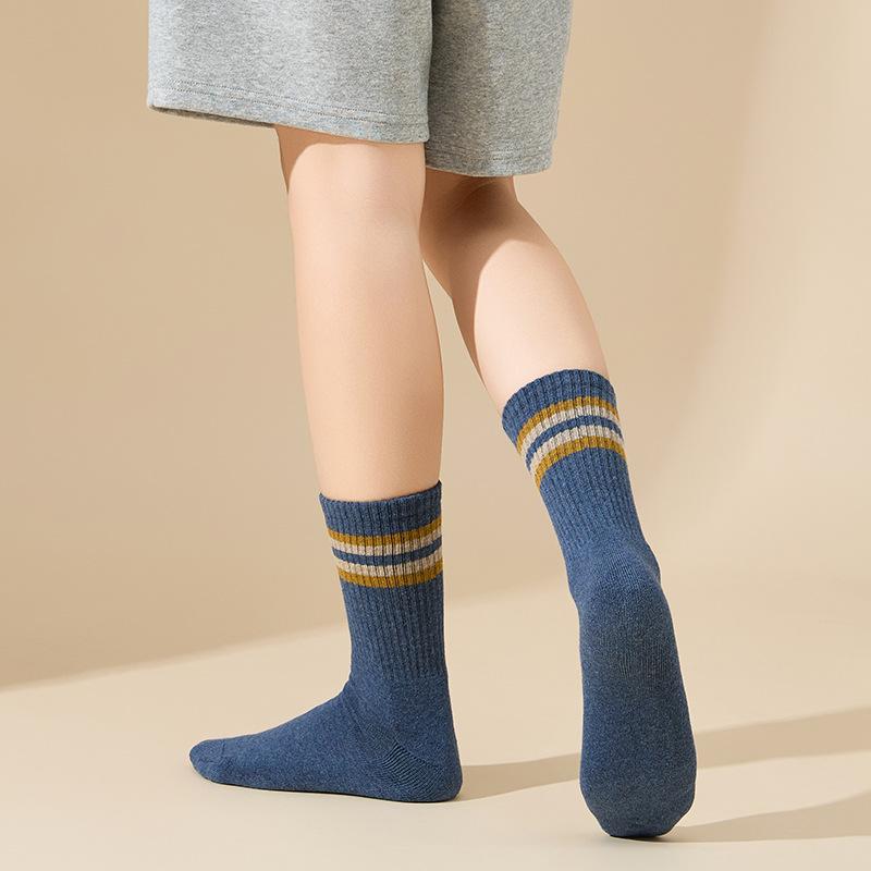 靴下 レディース 秋冬 暖かい 刺繍 ボーダー ミドル丈 ソックス デオドラント パイルソックス ルームソックス